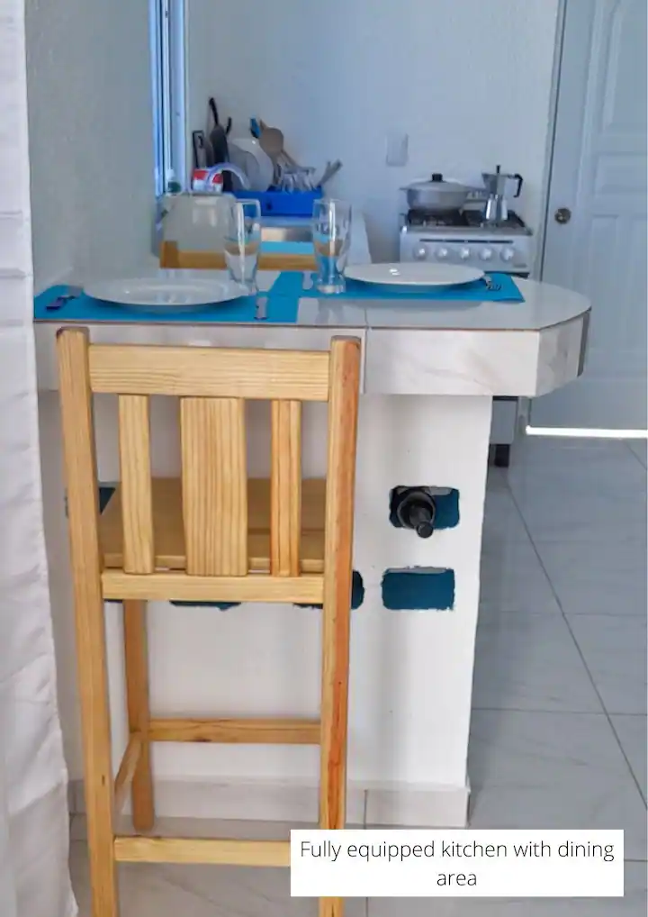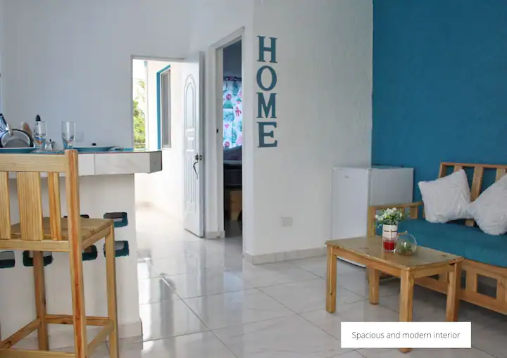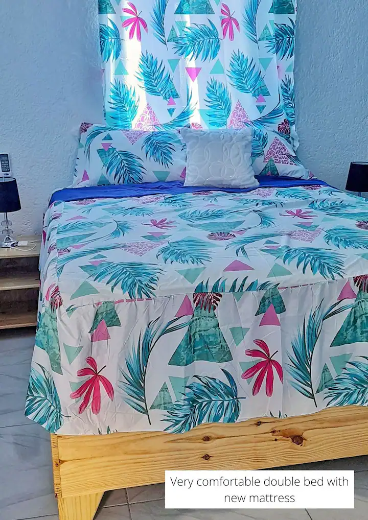 Este amplio y luminoso apartamento es ideal para parejas. Está recién amueblado (abril de 2022) y cuenta con aire acondicionado, agua caliente, Wifi, cocina totalmente equipada, cama doble muy cómoda, protección contra mosquitos, balcón y TV.