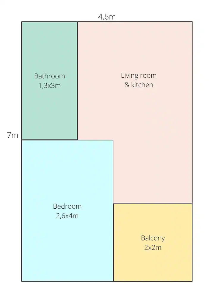 El cómodo apartamento de 32 metros cuadrados tiene una cocina totalmente equipada (que incluye sal, pimienta, aceite, café, azúcar y agua), un balcón privado con asientos, una sala de estar con sofá, un dormitorio con un colchón y armario de calidad firme, y Un baño con ducha de agua caliente y WC. Las toallas, la ropa de cama y el jabón los proporcionamos nosotros y están incluidos en el precio.