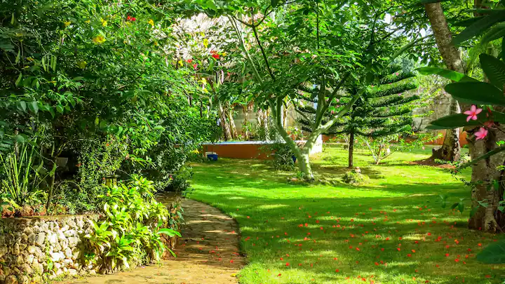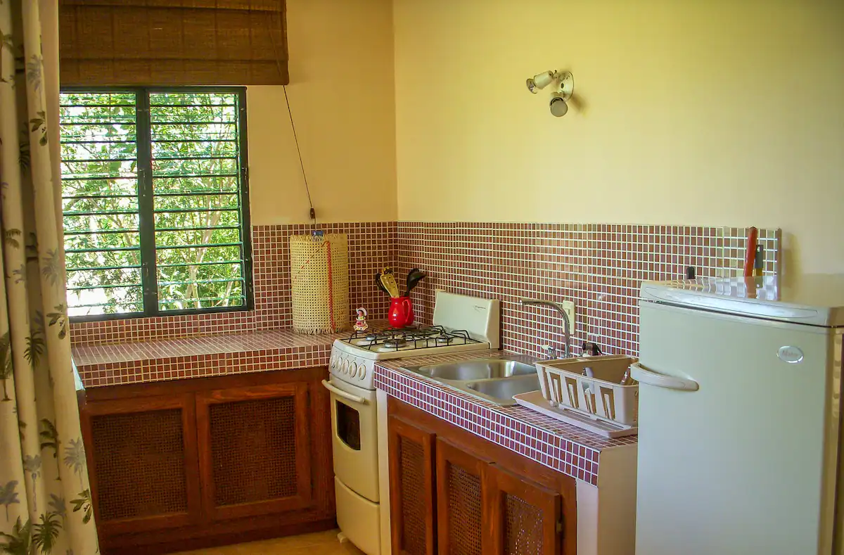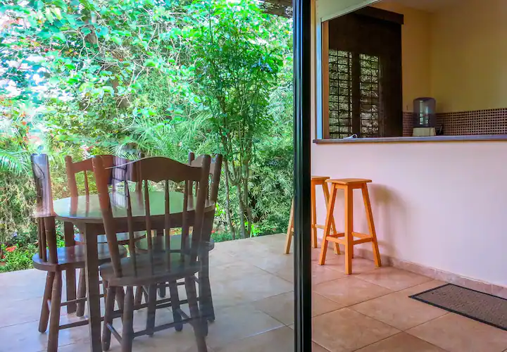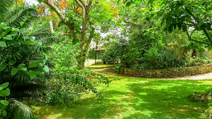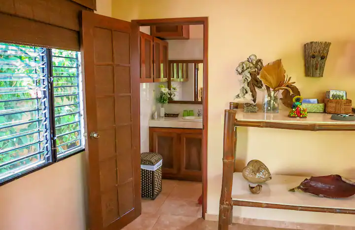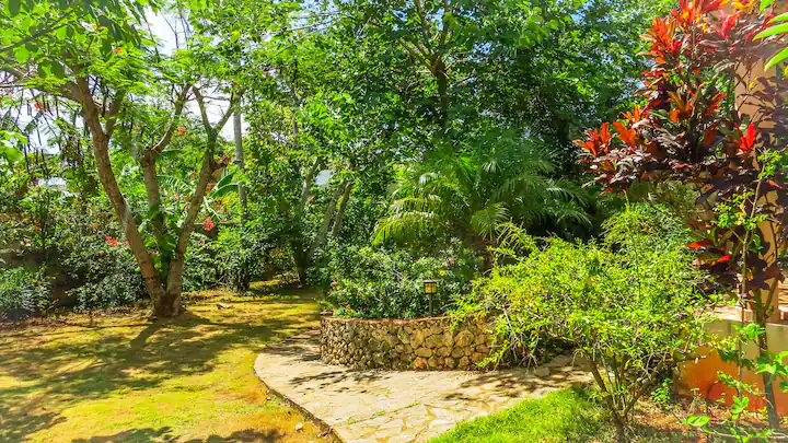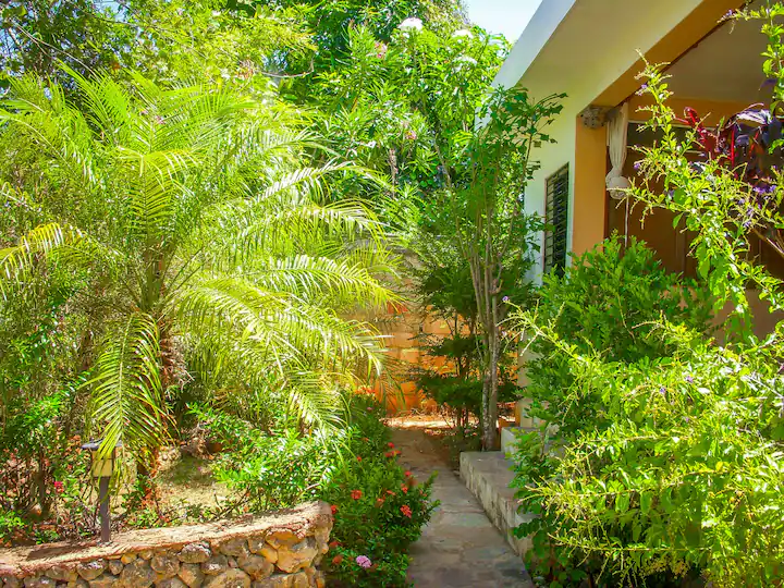 Bungalow de jardín moderno y actualizado, esta propiedad romántica es privada y segura mientras te sumerge en el encanto del estilo isleño. Flores tropicales y árboles frutales en abundancia directamente en el jardín te darán mucho tiempo para relajarte bajo el sol de la tarde.