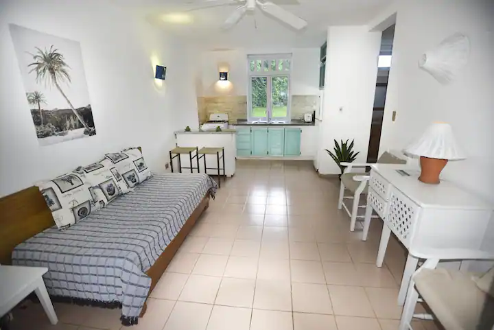 El apartamento en El Pelícano suena como un oasis tranquilo ubicado en un exuberante jardín tropical, con fácil acceso a Playita Beach y comodidades cercanas. El diseño espacioso, con un dormitorio, cocina, área de estar y porche, ofrece comodidad y conveniencia. La cama king-size en el dormitorio y la cama individual en el área de estar brindan arreglos de sueño flexibles.